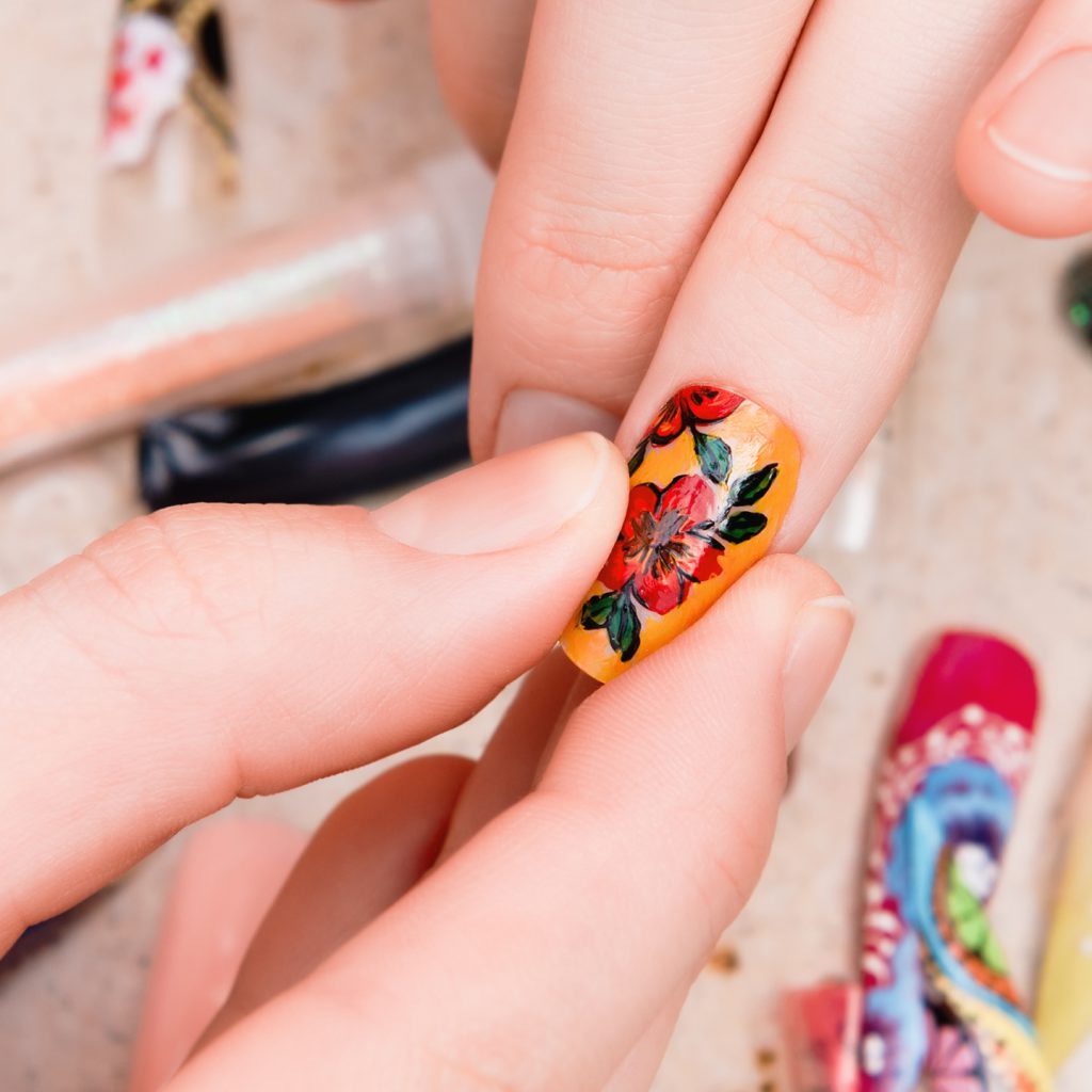 • Nail Art — glitter, foils, decals, and hand-painted designs